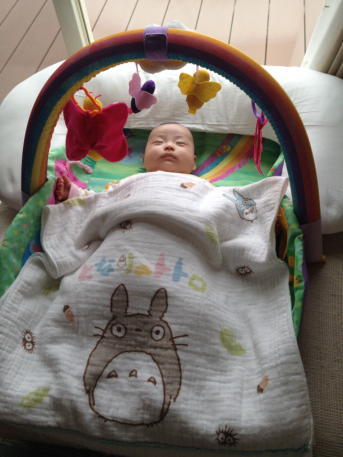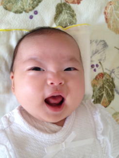 8/30でちょうど生まれて1か月です。体重も2775グラムだったのが4キロにもなり、だんだん体もしっかりしてきたように思えます。