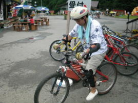 白馬47スキー場(はくばふぉーてぃーせぶん)では林間コースを利用したモトクロスが楽しい、さっそく私もチャリを借りてゴンドライン!