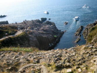 見ての通り、落ちたらタダではすまない程の断崖絶壁ぶりである。東尋坊は有名な観光地でありながら柵やフェンスと言った安全対策は皆無と言っていい。景観を保つためにあえてそれをしていないのかもしれないが非常に危険なことに変わりは無い。
