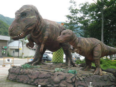 恐竜の骨の発掘などで有名になってしまったのか、やたらと恐竜をアピールするオブジェが目立つ。この左の写真は驚くべきことに動くのだ。写真を取ってて本当に吃驚した、写真を取ろうとピントを合わせたりしていたら急にダイナミックに関節が動きだし首が動いたかと思うと大きな口をあけて咆哮したのだ。なんとこの恐竜は音声機能までも有している。たぶん定刻になると動く仕掛けになっているのであろうが、可動部分の多さとそれに同調して鳴き声を発するという最新テクノロジーと古代の恐竜のロマンにしばし見とれてしまった。