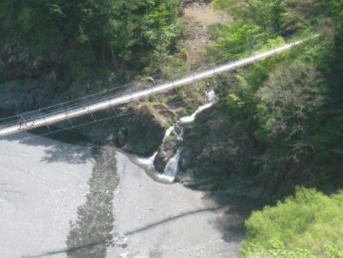 宮ヶ瀬の吊り橋とか戸川公園の吊り橋とか天竜川にかかる吊り橋とかあるけどここは本物だ。