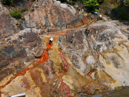 露天の方の写真だが岩が変色してオレンジ色になっているのが分かると思う。ラドンの含有率の高さがそうさせているのだろうか?