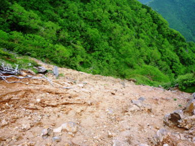 この火砕流事件のあと、地元自治体は強制力のある避難勧告を発令し、およそ11000人が避難生活を余儀なくされた。もっともこと判断は正しかったと思う。火砕流で亡くなった方の中には予想以上に一般市民が多かったからである。 先ほど死者行方不明者が43人と述べたが、その内訳は消防隊員12名、警察官2名以外は現場にいてはいけない一般市民だったということが分かった(インターネットでの情報ですが) もともとは森だった場所が15年以上たった今でもこの有様である。徐々に植生が繁茂していく様子が見て取れるが元の森の姿に戻れるのはまだまだ時間が必要であることは言うまでもない。 森は再生されるが命は戻らない。 |  |  |
